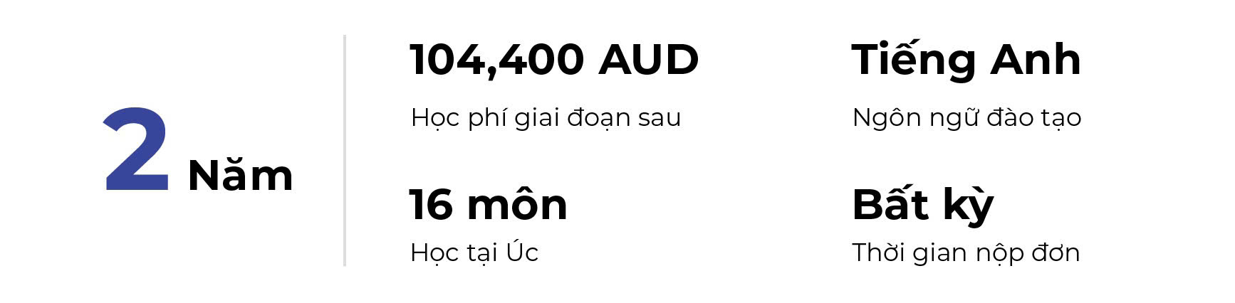 2 năm: 6,525 AUD x 16 môn = 104,400 AUD ~ 1.774.800.000 VND